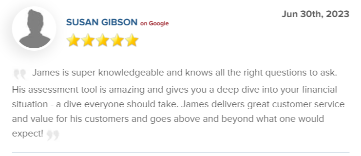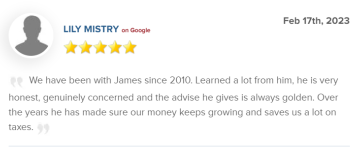 "My wife and I had an awesome meeting with James. He has a wealth of knowledge regarding retirement planning and was super helpful in working with us on understanding our retirement scenarios. James is a very passionate about enabling individuals to maximize their investments and de-risk the future where possible. If you are someone that is looking to better understand your future retirement options, I would highly recommend working with James and Al Mark Insurance!"
