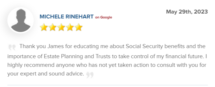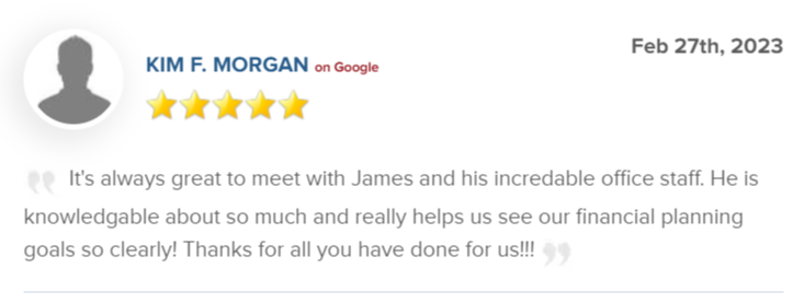 "I highly recommend James' Wealth & Retirement Strategic services for anyone looking for comprehensive and personalized financial planning. He helped me create a tailor-made plan that prioritizes my goals and needs, and provided me with expert guidance and support throughout the process. He also helped me with tax strategies, estate planning, and insurance needs. He is very professional, knowledgeable, honest and friendly. He never tried to sell me anything not needed. I am very satisfied with his guidance and the results I achieved. Thank you, James!"